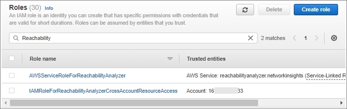 일반 Account에는 AWSServiceRoleForReachabilityAnalyzer와 IAMRoleForReachabilityAnalyzerCrossAccountResourceAccess라는 Role이 만들어진 것을 볼 수 있습니다.