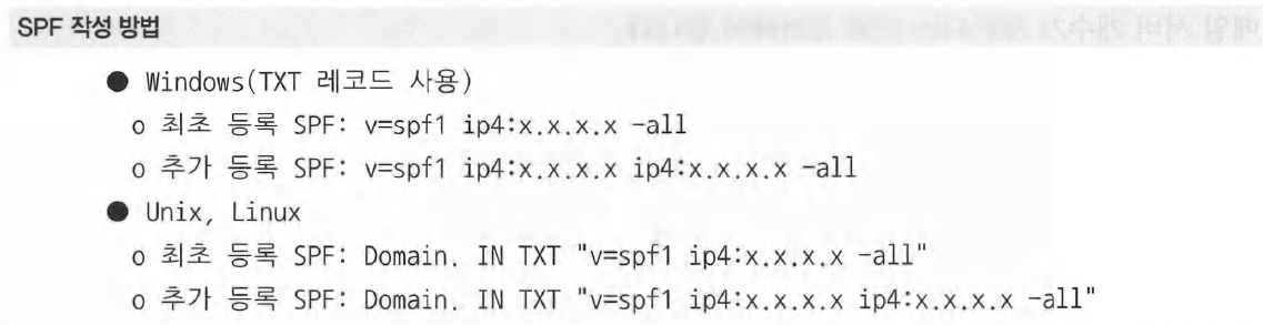 - -all: 메일 발송 IP를 위조해 보내온 메일을 수신 메일 서버에서 폐기(Drop)하라.