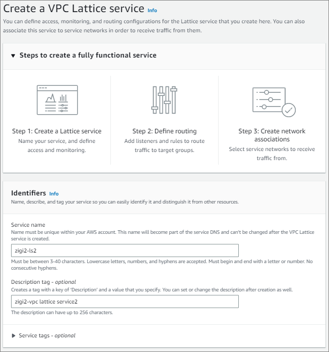 Target을 만들고 나면, VPC Lattice Service를 만듭니다.