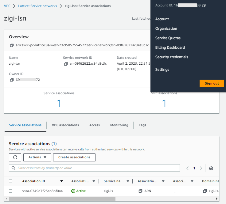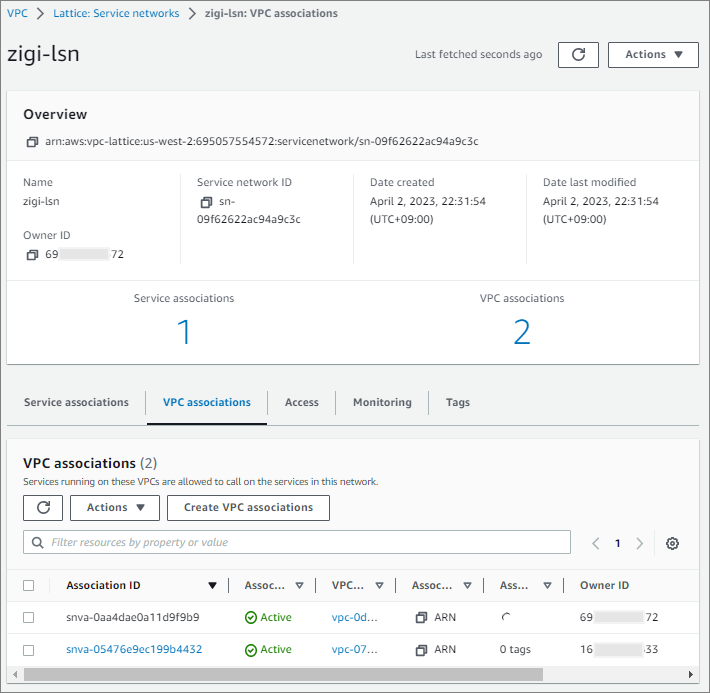 zigi-lsn이란 VPC Lattice Service Network의 Owner의 계정(69-72)도 확인 할 수 있습니다.