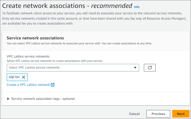 Service를 공유 받은 VPC Lattice Service Network인 zigi-lsn에 연결합니다.