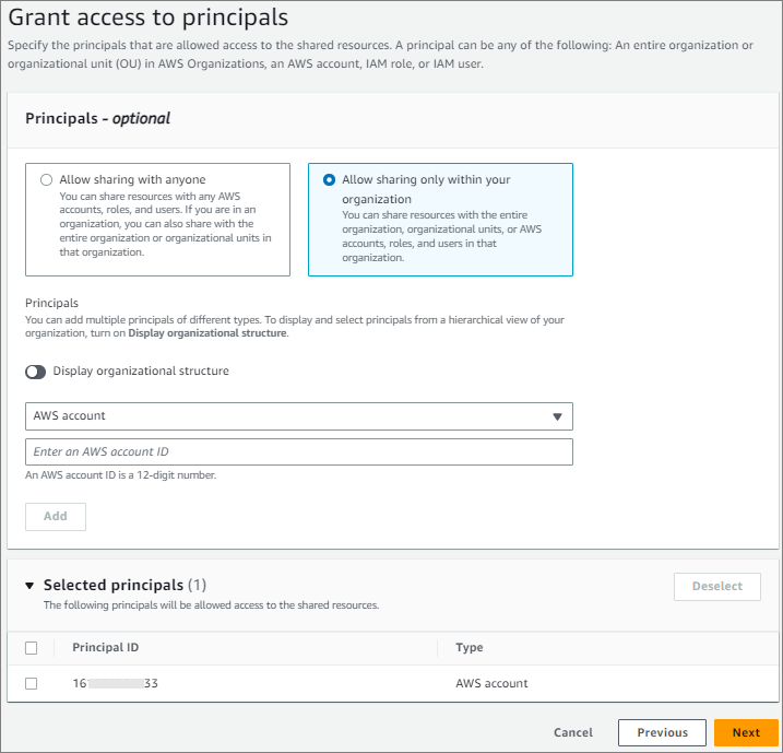 Resource Access Manager에서 새로운 자원을 공유합니다.