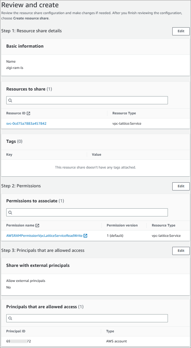 VPC Lattice Service를 공유 할 계정을 선택합니다.