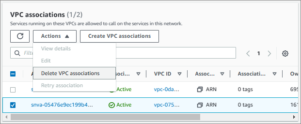 VPC Lattice Service Network에 Owner 계정(69-72)이 연결한 공유 계정(16-33)Service 연결을 해제하는 경우 : 가능