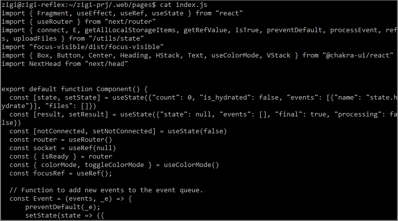- zigi_prj.py 의 컴파일로 생성된 파일을 확인하려면, '.web/pages/index.js'에서 볼 수 있습니다.