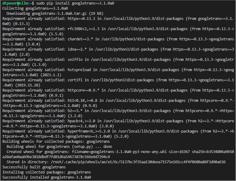 Pypi 페이지에서 확인 가능한 것처럼 pip intall googletrans로 손쉽게 다운 받아서 바로 사용이 가능합니다.