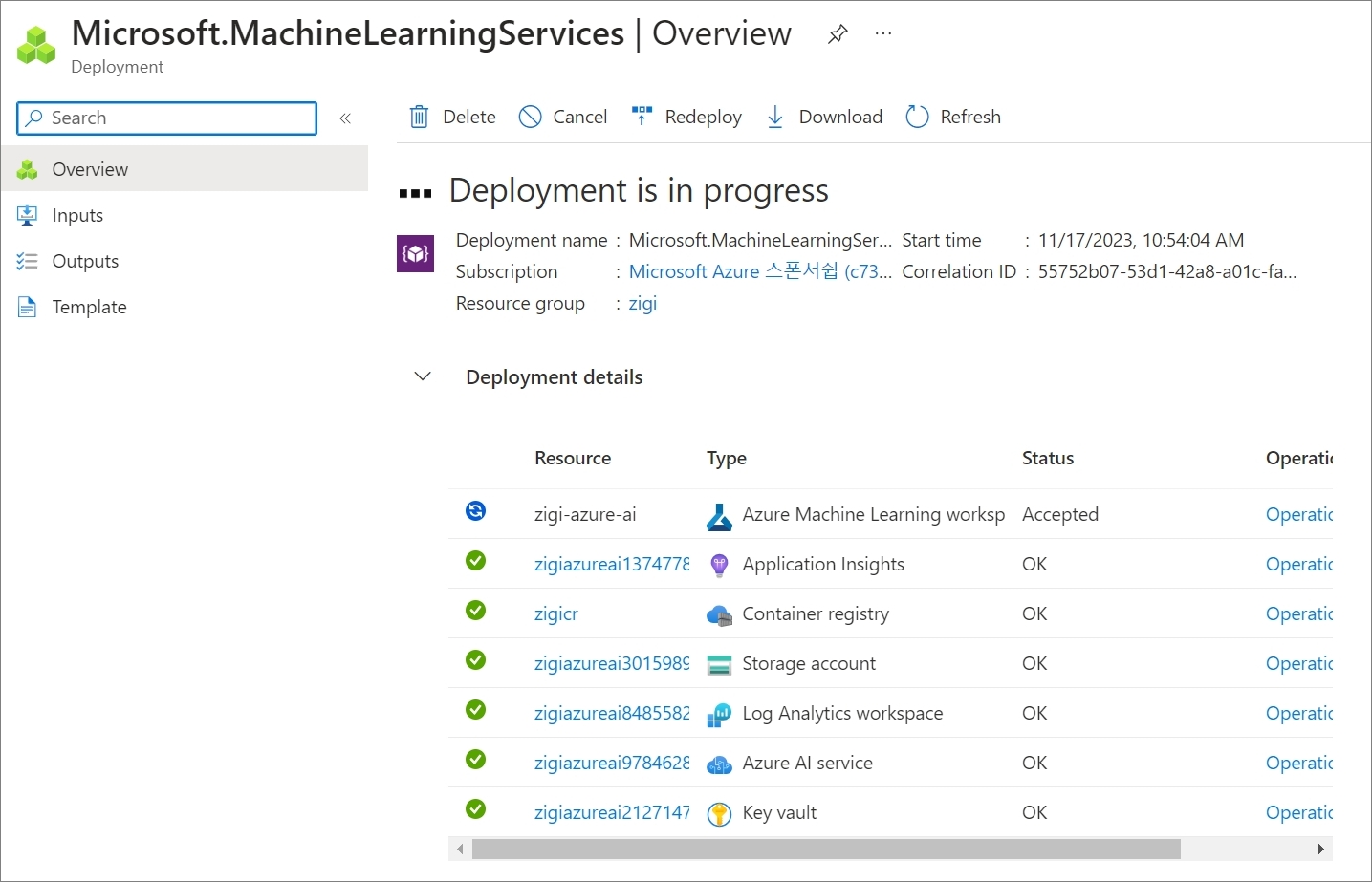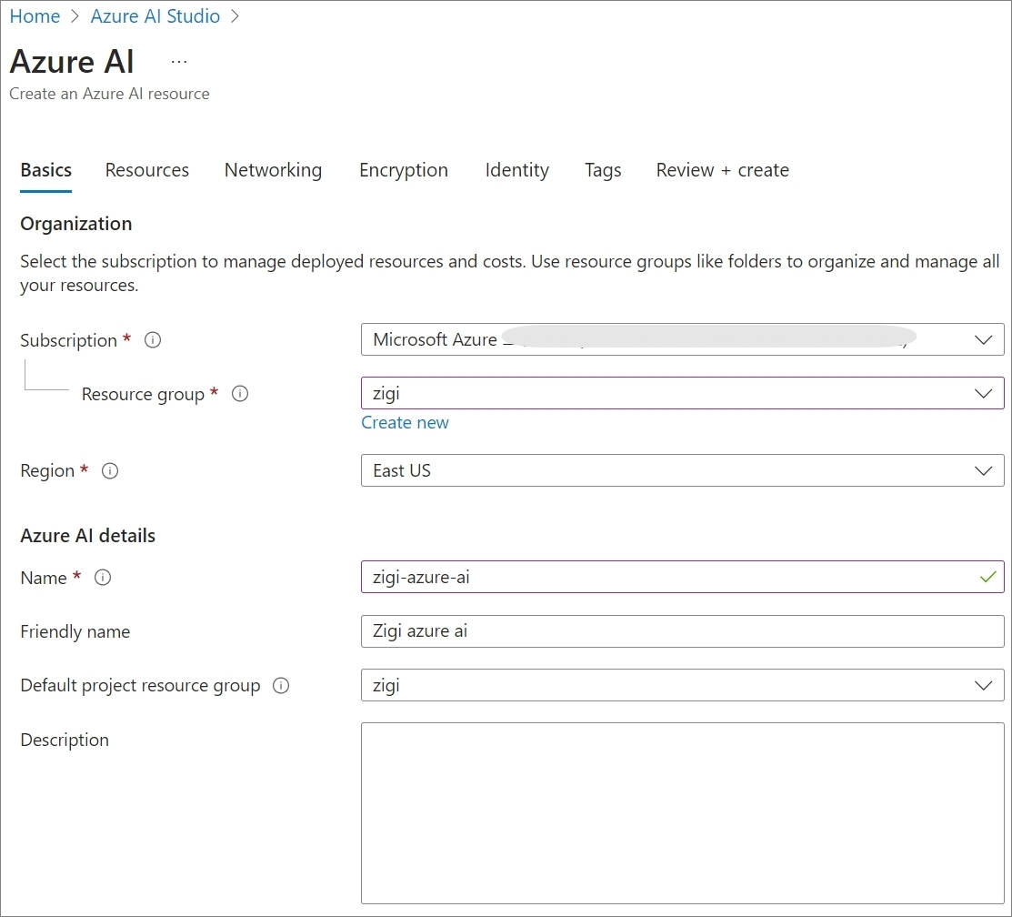 기존에 생성된 AI 관련 리소스를 선택하거나 새롭게 만드시면 됩니다.