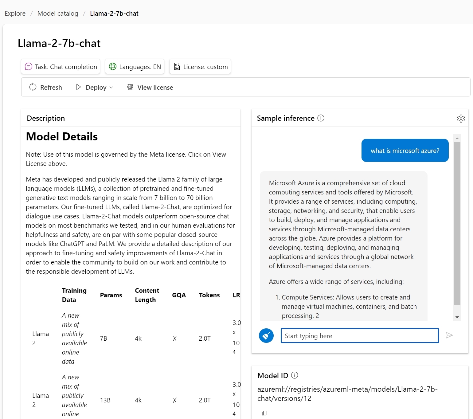 'what is microsoft azure?'라고 질문하니, 해당 모델에서 답변을 생성한 것을 확인 할 수 있습니다.