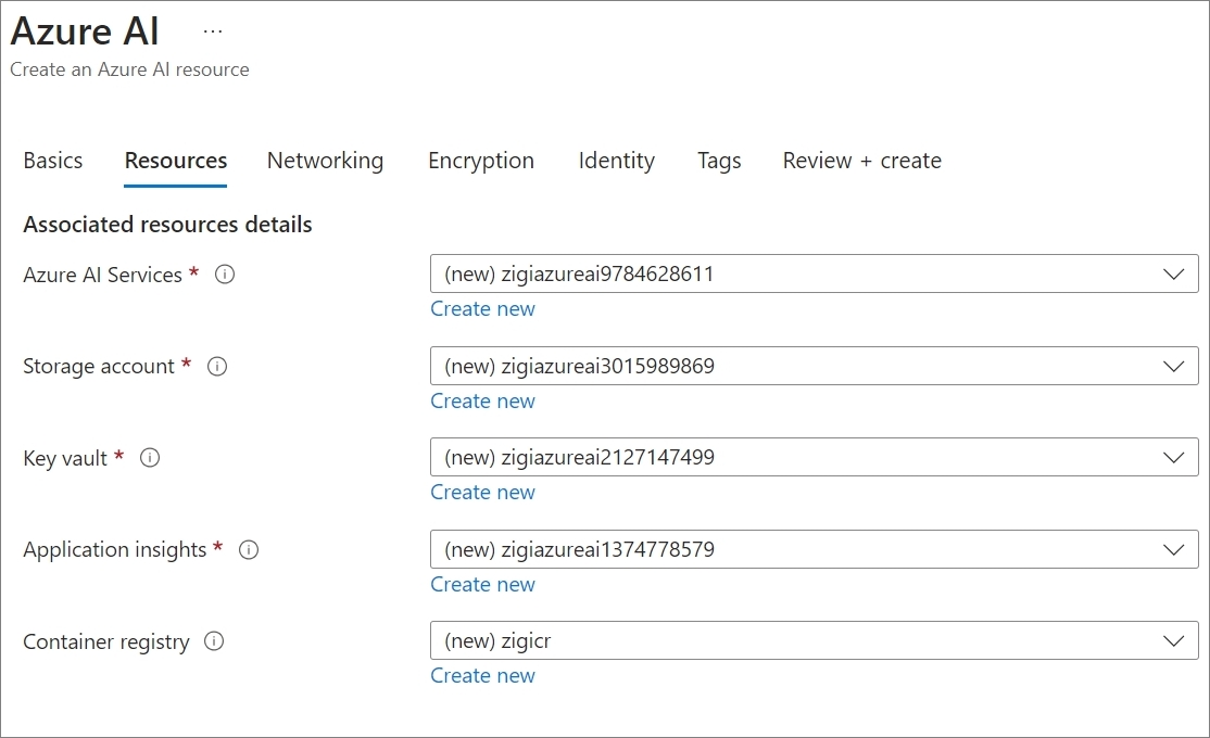 Azure AI Studio를 위해서 필요한 Azure AI 리소스를 연결하는 데,