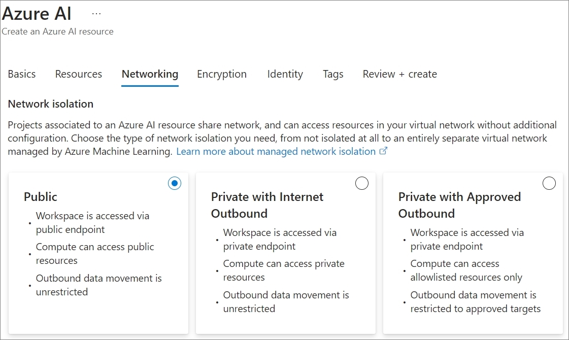 Azure AI 리소스에 대한 네트워크 접근 제어 설정입니다.