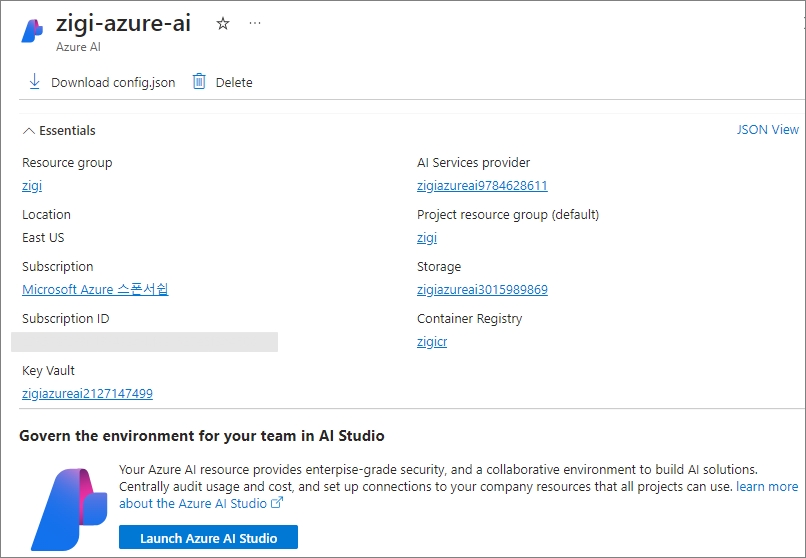 기존에 생성된 AI 관련 리소스를 선택하거나 새롭게 만드시면 됩니다.