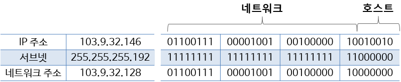 - 네트워크 주소: 103.9.32.128(첫 번째 숫자)