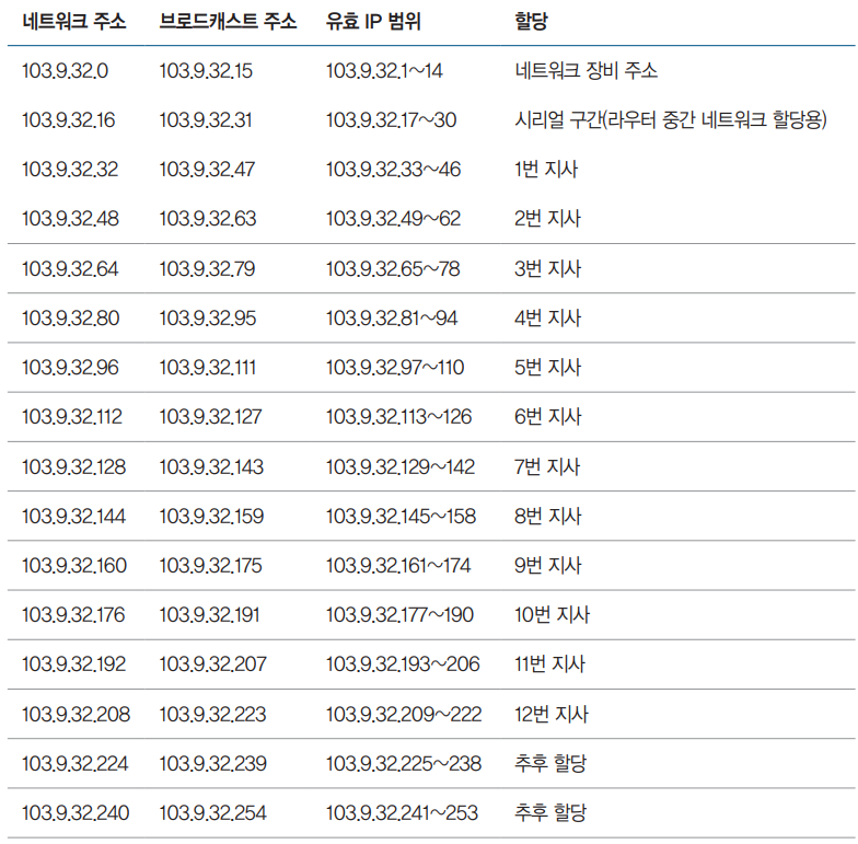 현재 가진 네트워크는 103.9.32.0/24 네트워크입니다