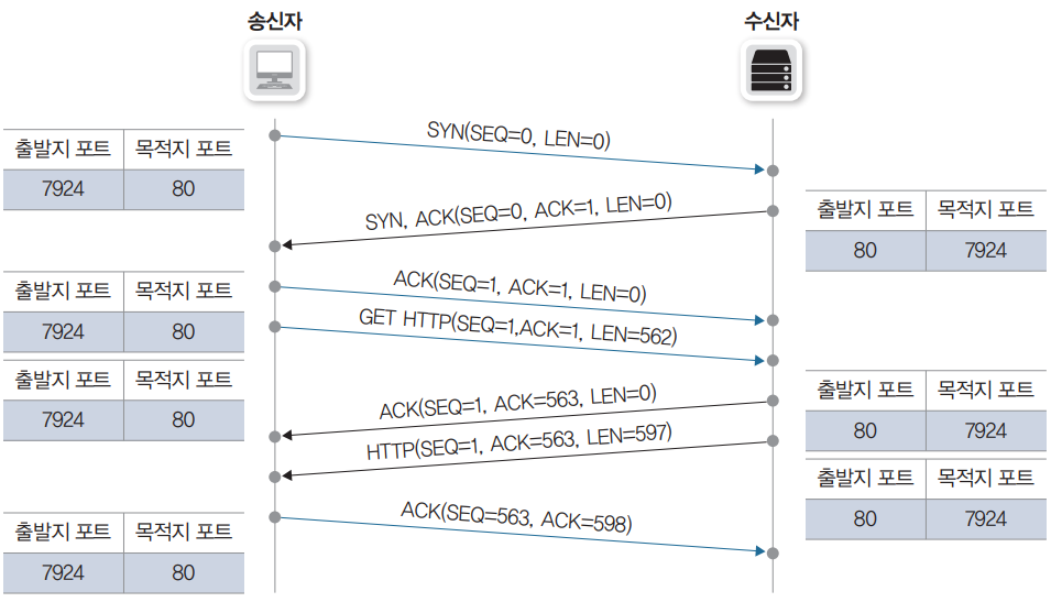 TCP는 3.4.1 4계층 프로토콜(TCP, UDP)과 서비스 포트 절에서 간단히 다루었던 4계층의 특징을 대부분 포함하고 있습니다.
