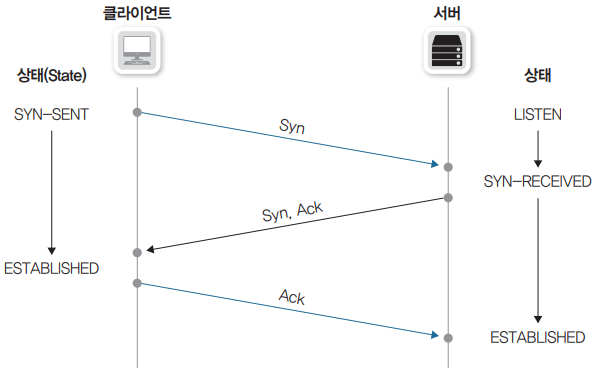 통신을 처음 시도할 때 송신자는 플래그에 있는 SYN 필드를 1로 표기해 패킷을 보냅니다.