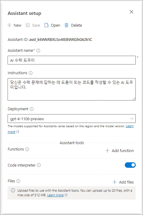 먼저 Assistant 이름은 'AI 수학 도우미'라고 하고,