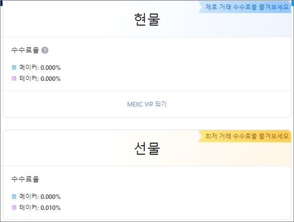 현물은 메이커와 테이커 모두 수수료가 0%이며,