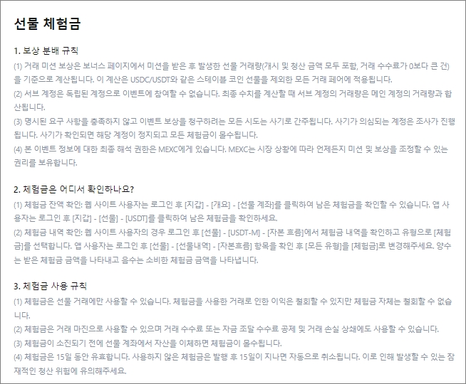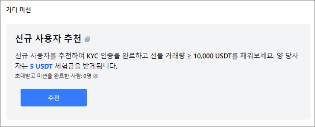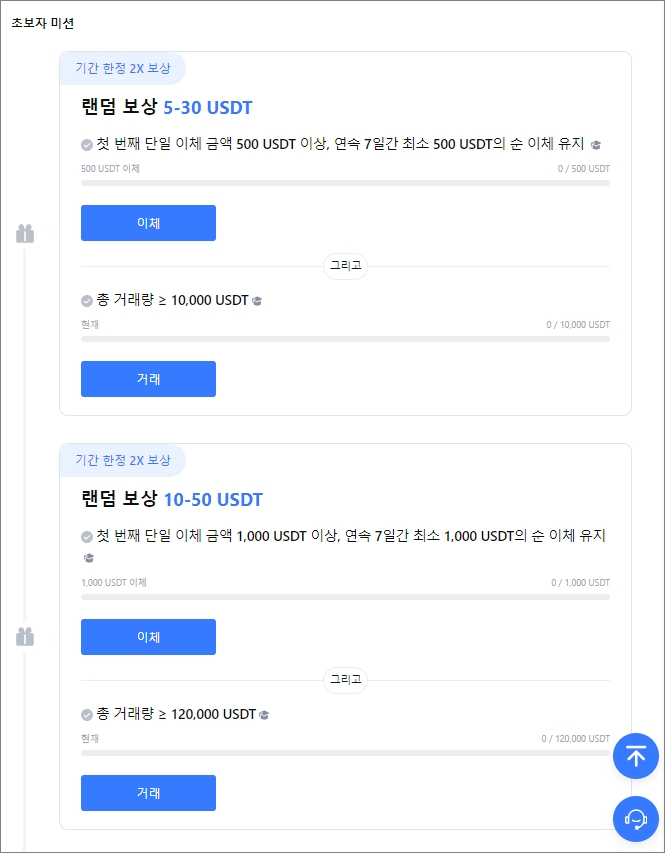 다음과 같은 미션을 모두 수행하면 최대 1,000 USDT 체험금까지 받을 수 있습니다.