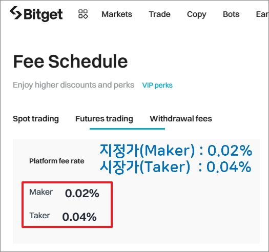 현물 거래의 경우 Bitget과 동일한 0.01%네요.