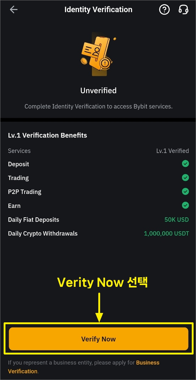 하단의 Verity Now를 선택합니다.