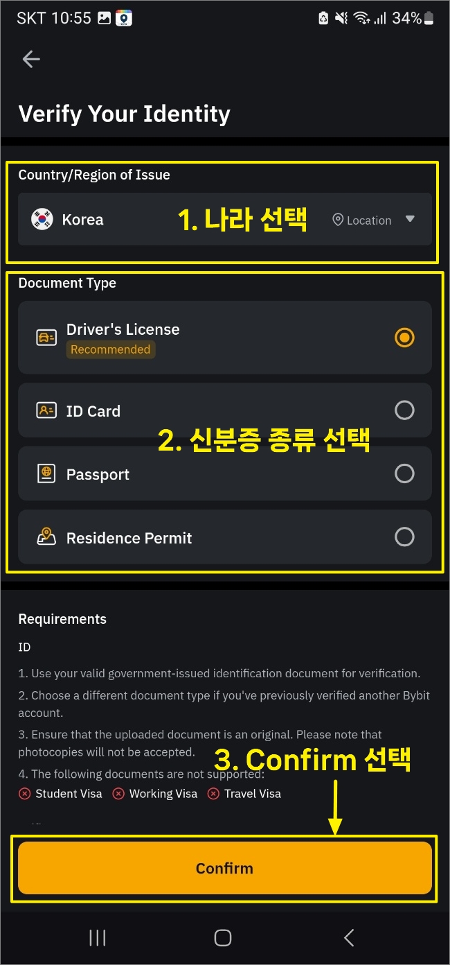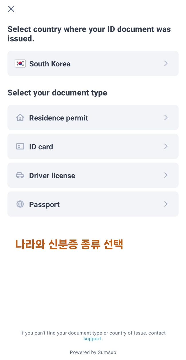 다시 국가와 신분증 종류를 선택합니다.