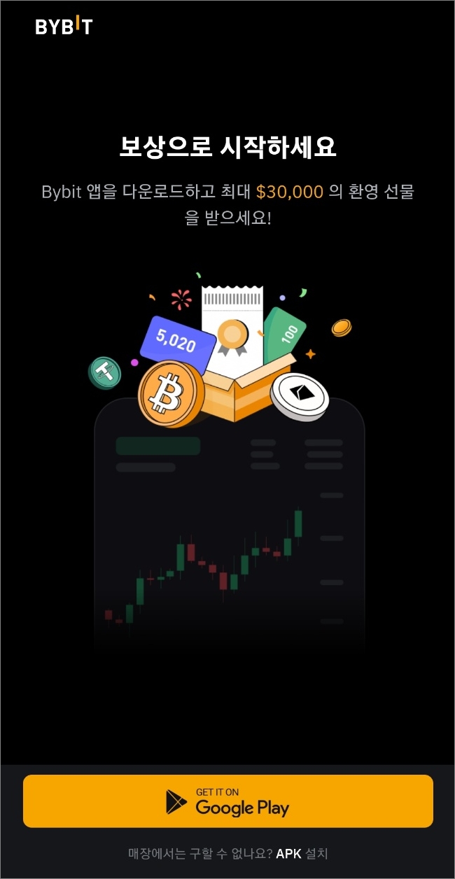 바이비트 앱을 설치하도록 안내를 합니다.