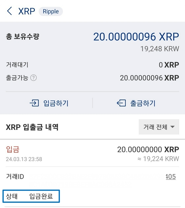 XRP 코인을 업비트로 출금할 것이기 때문에