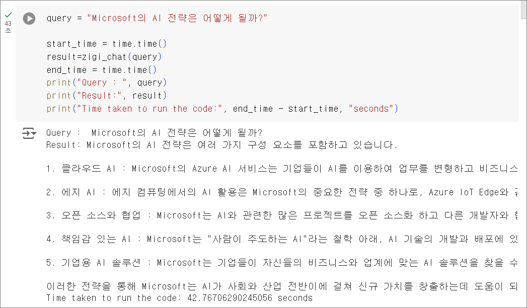 gpt-4의 경우 답변까지 약 42.77초가 소요되었습니다.