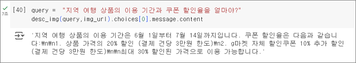 이제 앞선 이미지에 있는 내용에 대해서 아래와 같이 질의해 보겠습니다.