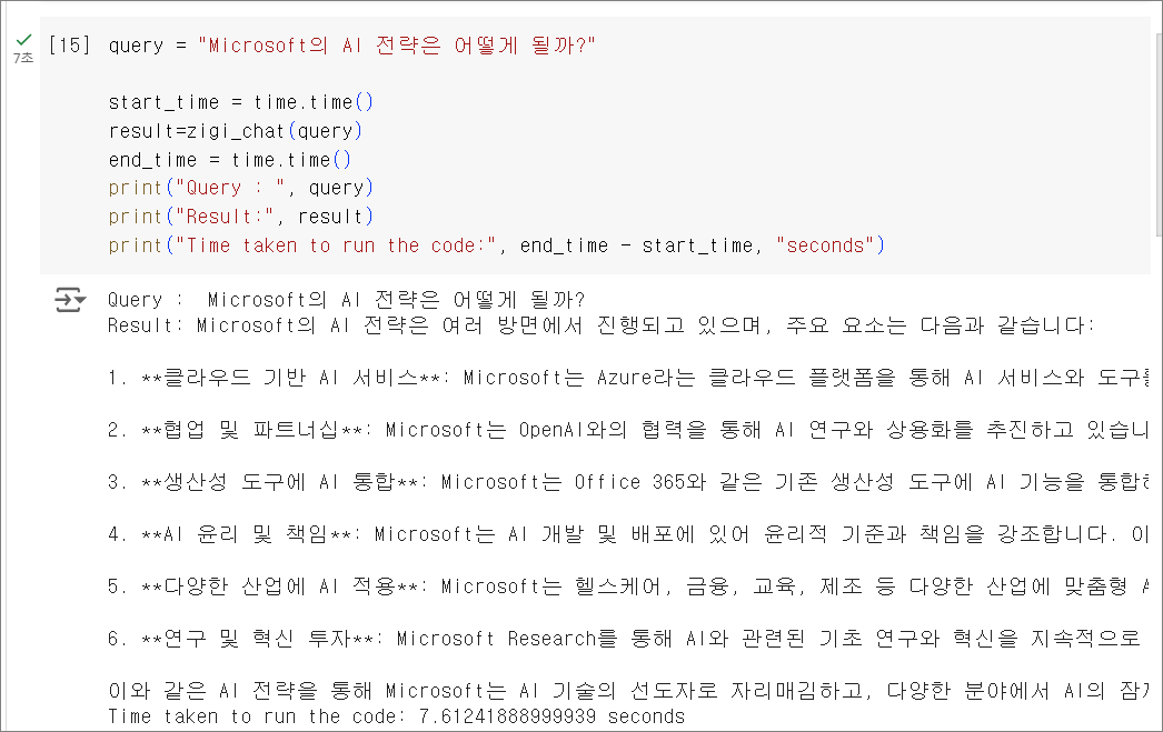 답변까지 약 7.61초가 소요된 것을 확인 할 수 있습니다.