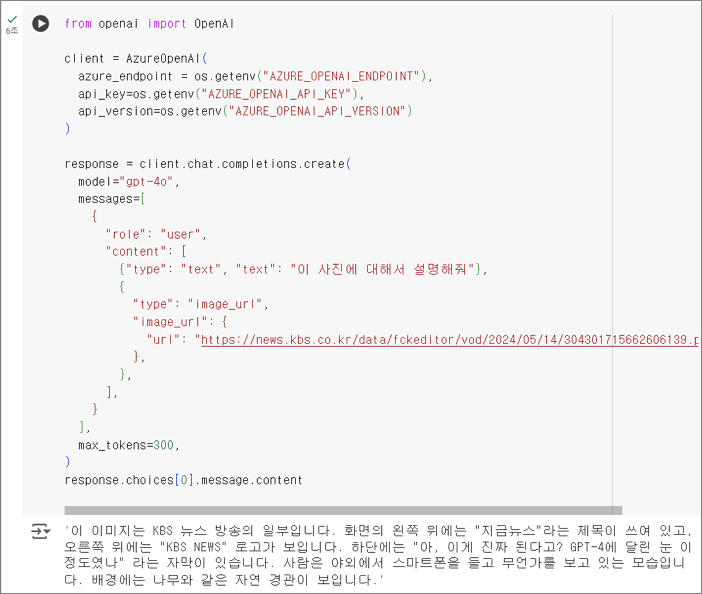이미지 URL을 주고, gpt-4o에게 설명해주도록 요청합니다.