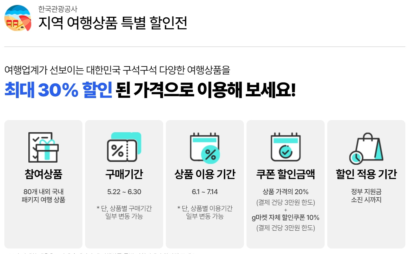 "지역 여행 상품의 이용 기간과 쿠폰 할인율은 얼마야?"