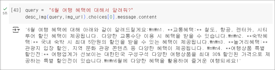 이번에는 위 이미지의 여행 혜택에 대해서 아래와 같이 질문합니다.