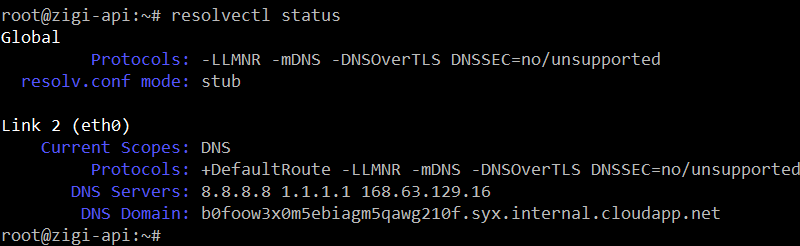 이 시점에 systemd-resolved는 eth0 인터페이스의 DNS 설정을 인지하게 됩니다