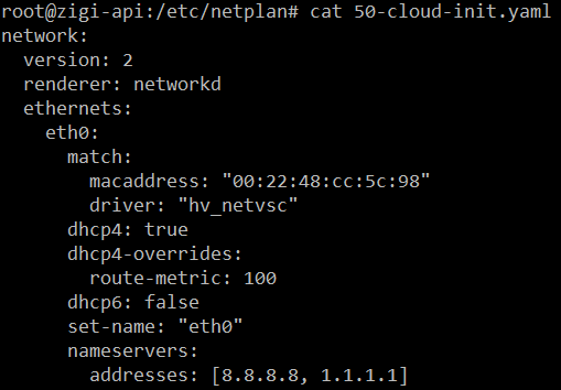 eth0에 8.8.8.8과 1.1.1.1 DNS 서버가 설정된 것을 볼 수 있습니다.