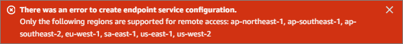 지원되지 않는 Region을 선택하여 Endpoint Service를 생성하려고 하면