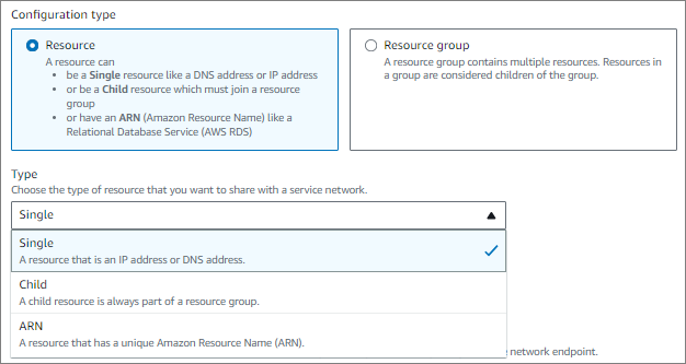 Single과 ARN은 직접 어떤 Resource Gateway에 연결될지 선택하고,