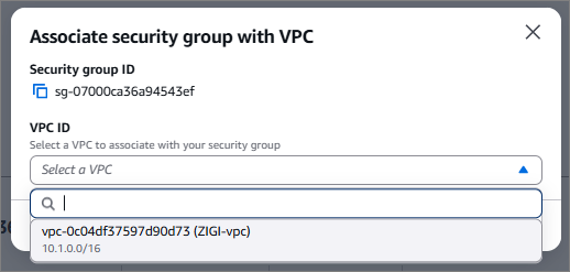 (Default-VPC-ZIGI-SG1 의 VPC ID를 확인해보면, 위의 Security Group VPC와 다른 것을 확인)