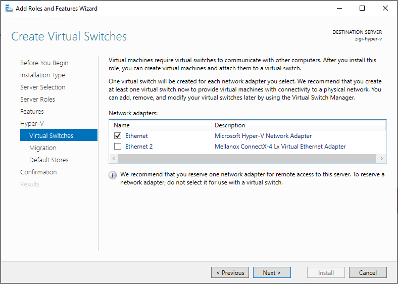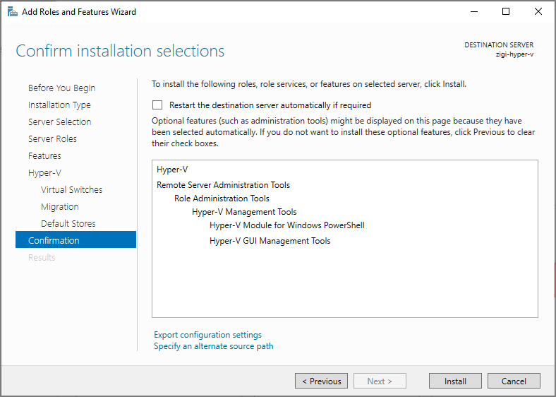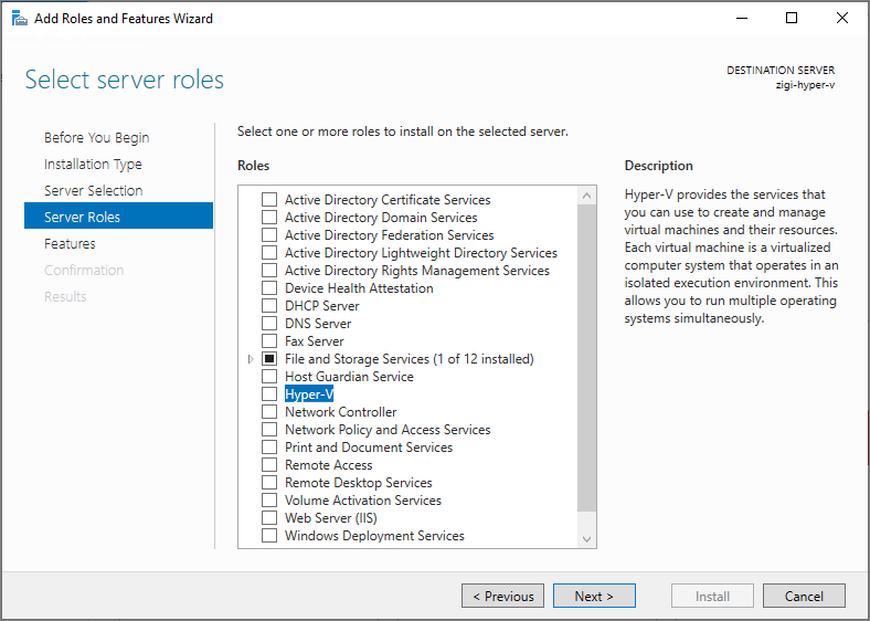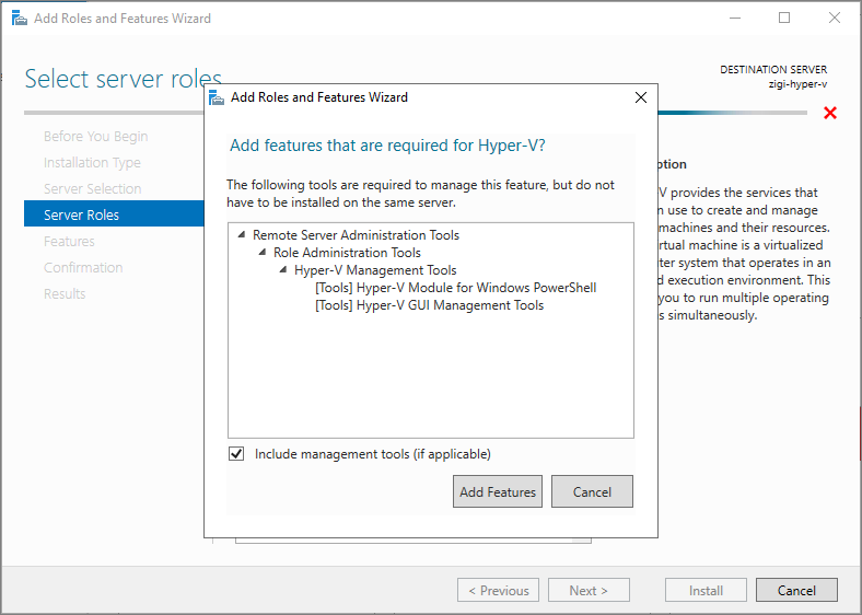Server Role로 'Hyper-V' 기능에 체크 후,