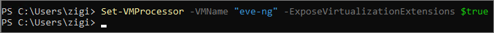 Powershell에서 다음과 같이, ExposeVirtualizationExtensions는 True로 설정해줘야 합니다.
