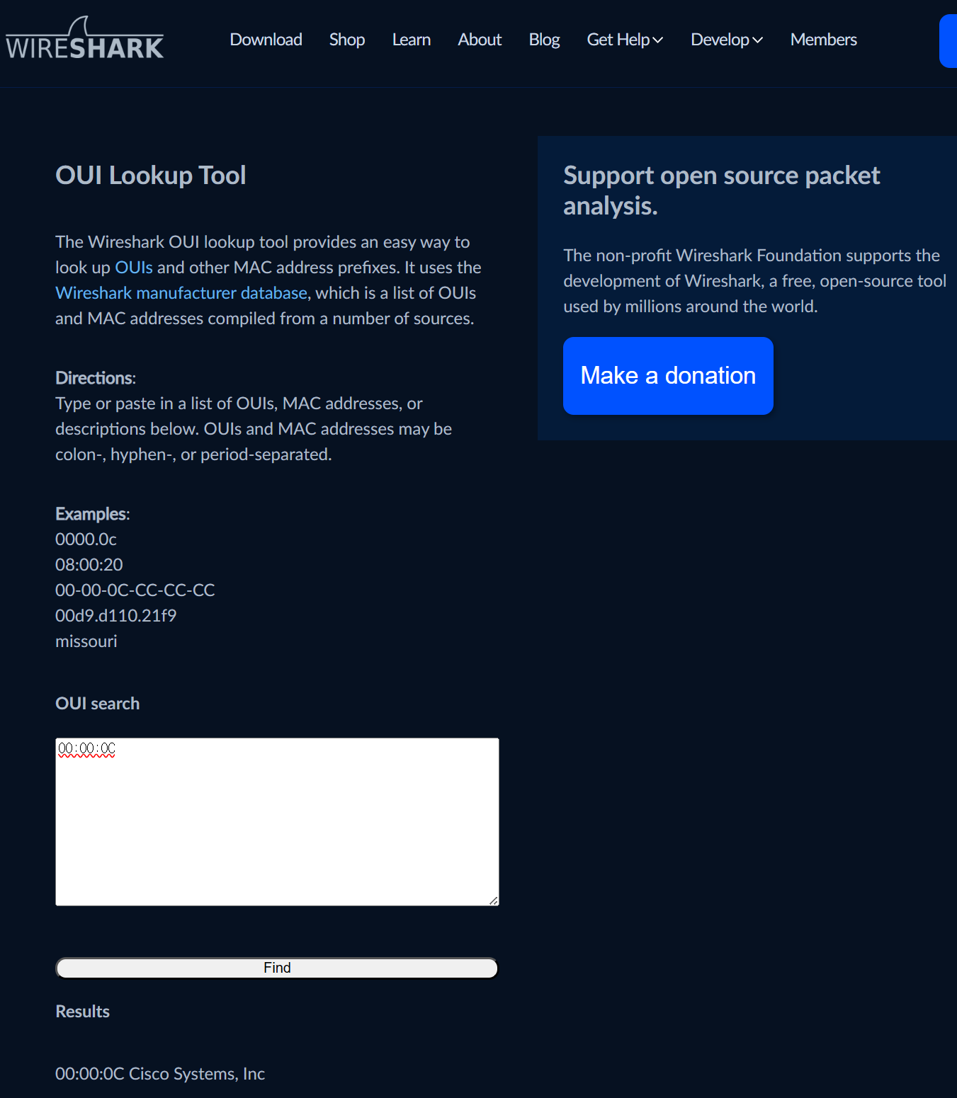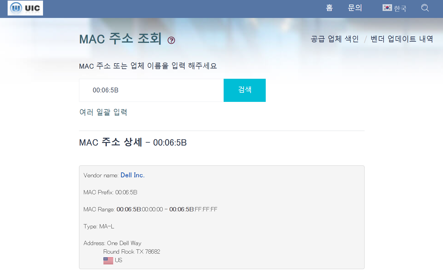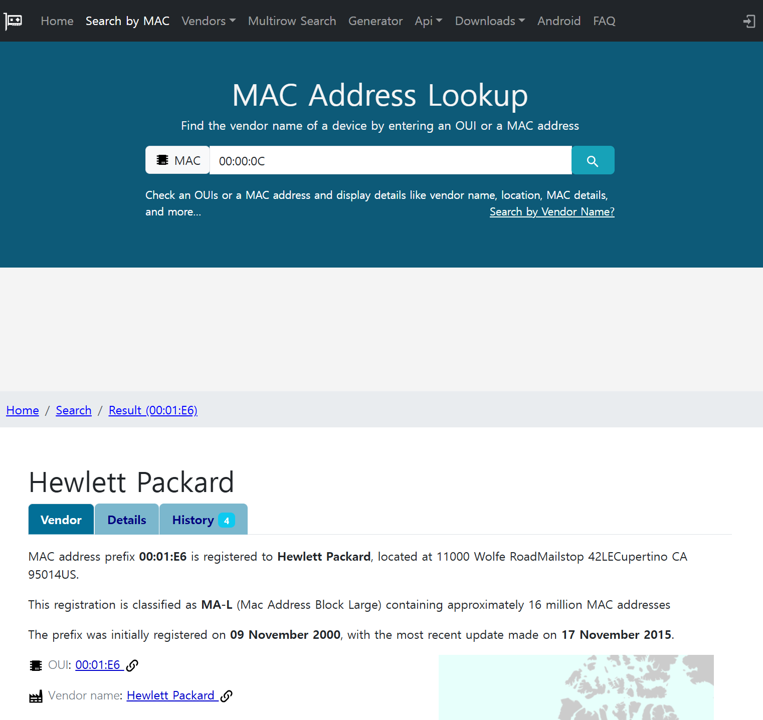 이러한 OUI로 해당 장비의 제조사를 확인 할 수 있는 사이트들이 있는 데,