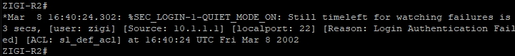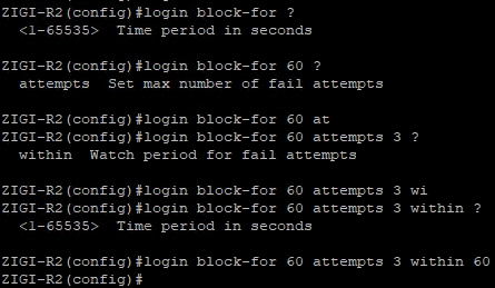 ZIGI-R2 장비에서 login block-for 기능을 다음과 같이 설정합니다.