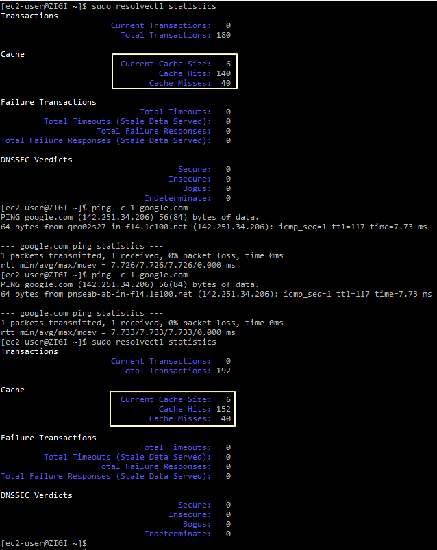 - resolvectl statistics 명령을 이용해서, 현재 Cache 사용 현황을 볼 수 있습니다.