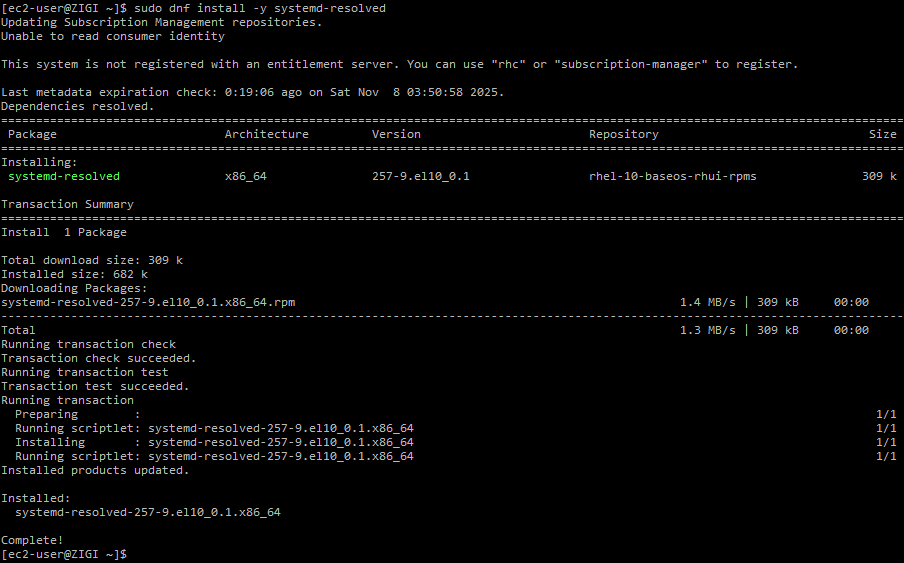 - RHEL에서는 systemd-resolved 패키지는 기본 설치 상태는 아닙니다.