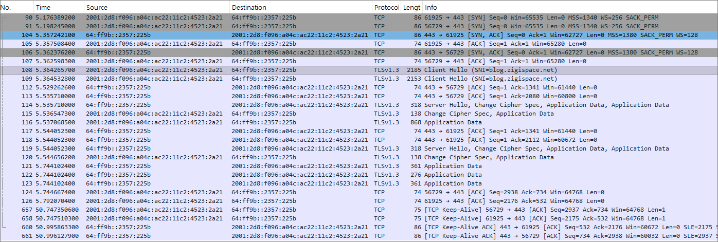 실제 이 과정에 대해서 패킷을 wireshark로 떠보면 아래와 같습니다.