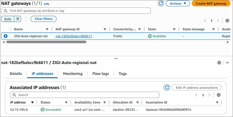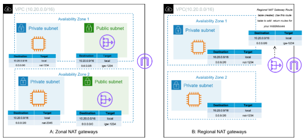 - Zonal이 기존 NAT Gateway 생성 방식이고, 왼쪽의 Regional이 리전 NAT Gateway 생성 시 선택하는 메뉴.