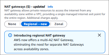 - AWS Console에서 NAT Gateway 생성 시에, 아래와 같이 Availability mode가 추가 된 것을 볼 수 있음.