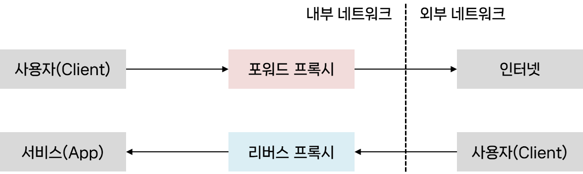포워드 프록시는 내부 사용자의 요청을 대신해서 인터넷으로 트래픽을 내보냅니다. 그래서 보통 '사내 인터넷 출구'에 놓습니다. 리버스 프록시는 반대로 외부 사용자의 요청을 받아서 내부 서버로 전달하기 때문에 보통 '서비스 입구'에 놓습니다.