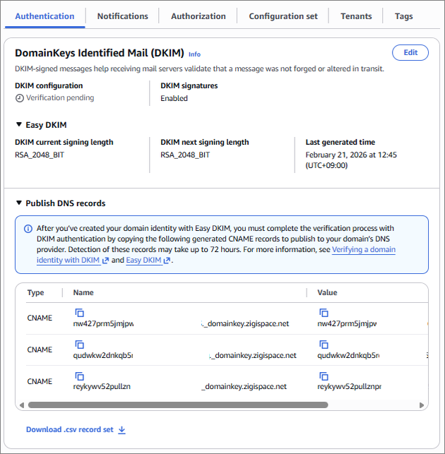 "arn:aws:ses:ap-northeast-2:계정:identity/zigispace.net"