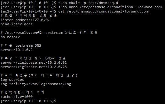 server=/zigispace.net/10.2.0.61 # Conditional forward로 사용할 도메인과 DNS 정보